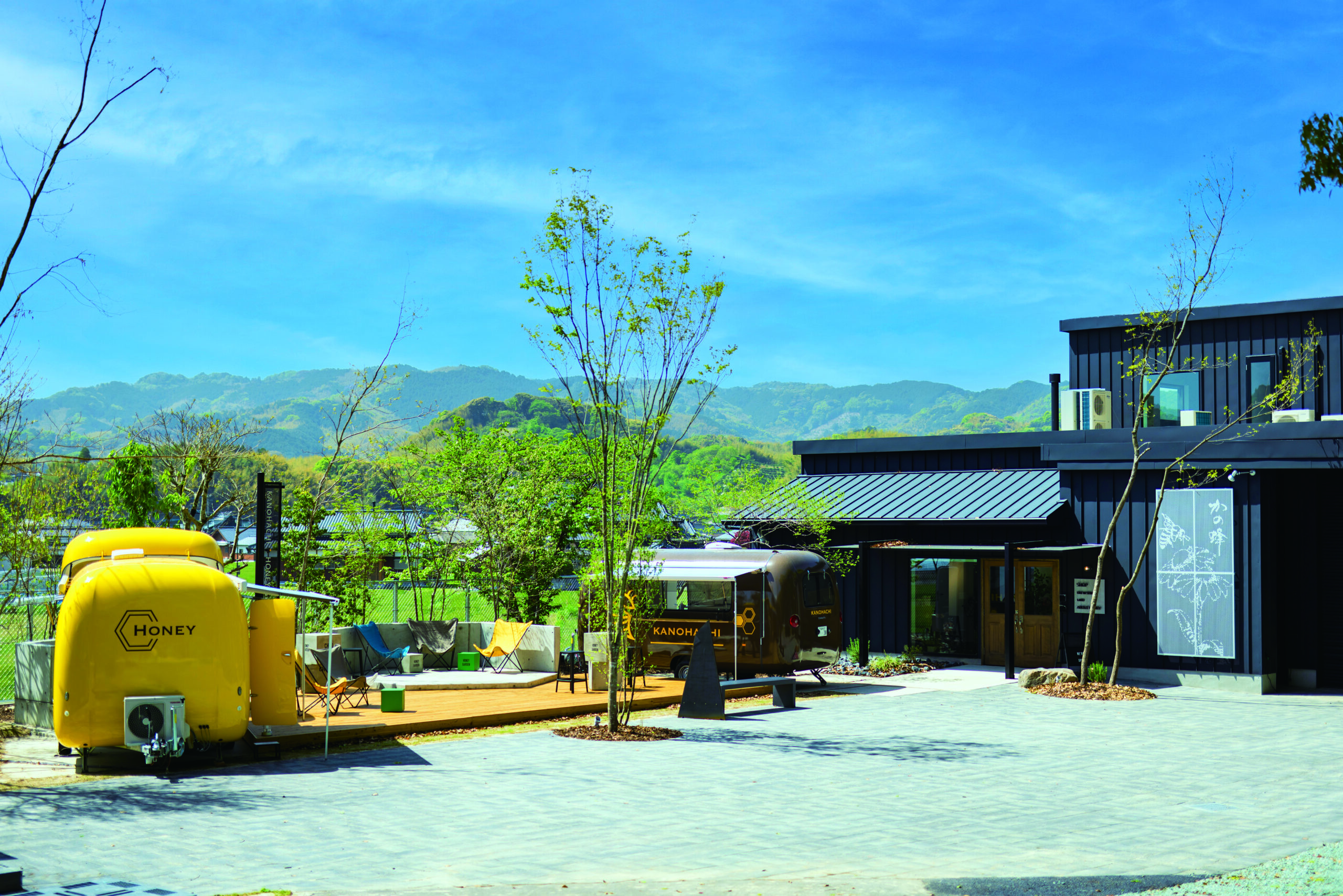 また、八女市立花町にあるカフェ「かのはちハニガーデン」、全メニュー はちみつかけ放題や、貸し切個室の、かわいいトレーラーハウスなどが話題で、メディアなどにも多く取り上げられる人気のスポットとなっています。
